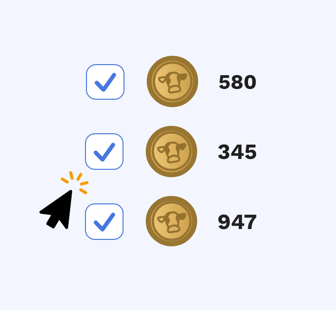 Go to the Rewards section in your account. Choose how many CaterCoins you’d like to redeem. And then choose whether you'd like a future CaterCow credit or an Amazon gift card.